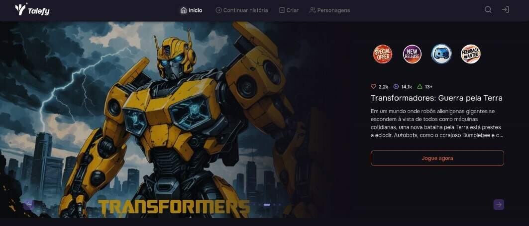 Talefy oferece uma abordagem completamente diferente para contar histórias, focando em narrativas interativas. É uma plataforma online onde você pode criar e jogar histórias no estilo "escolha sua própria aventura", muito parecido com um jogo de RPG baseado em texto, onde o leitor se torna um participante ativo.