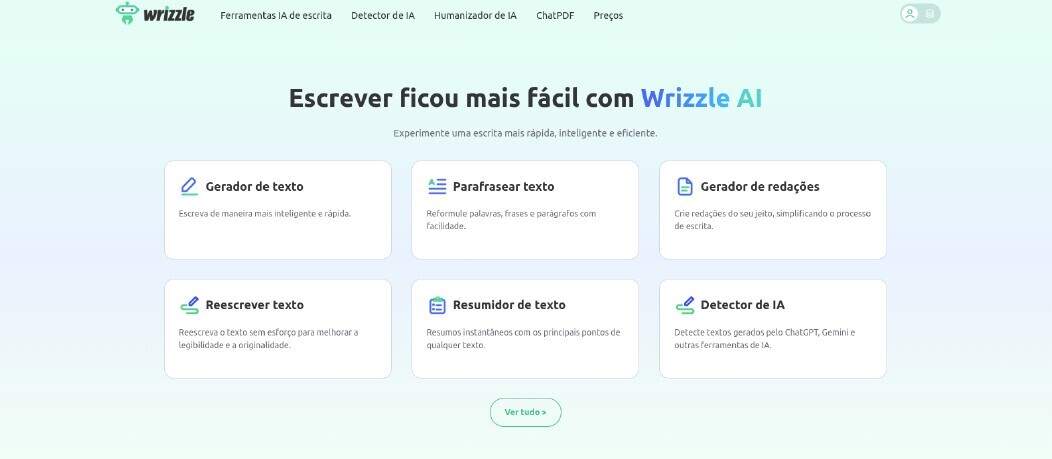 O Wrizzle é uma plataforma online de gerador de texto de IA e um conjunto de ferramentas de escrita projetado para uma ampla gama de tarefas. Seu conjunto de mais de 30 ferramentas de escrita inclui um gerador de histórias com IA, além de outras como um redator de artigos, um resumidor e um gerador de e-mails. Uma funcionalidade particularmente útil é a opção humanizar texto, que ajuda a tornar o conteúdo gerado por IA mais natural e autêntico.