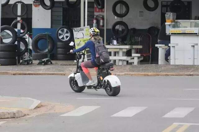 Mulher pilotando ciclomotor em Campo Grande (Foto: Marcos Maluf)