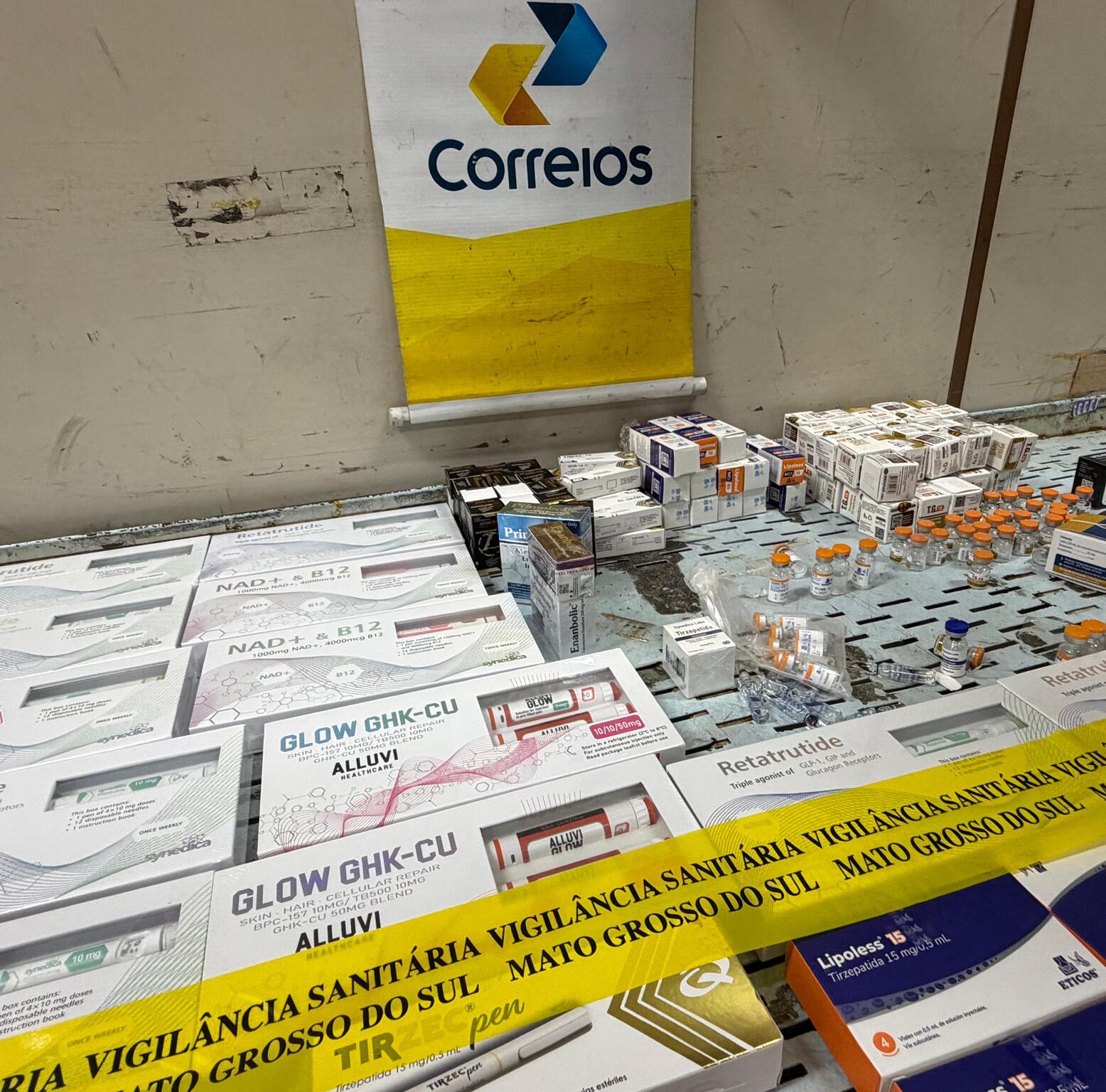 A Vigilância Sanitária de Mato Grosso do Sul apreendeu uma tonelada de medicamentos ilegais, como emagrecedores, anabolizantes e peptídeos, nos Correios de Campo Grande. A operação Visa-Protege identificou produtos escondidos em brinquedos e eletrodomésticos, avaliados em R$ 10 milhões. O material será incinerado e os dados de remetentes encaminhados à Polícia Civil para investigação.