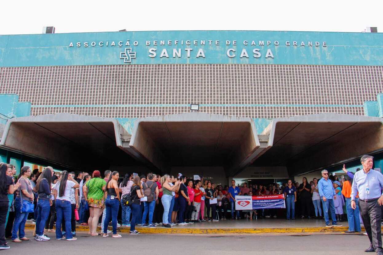 Trabalhadores da Santa Casa durante a greve por atraso de salário em dezembro (Foto: Juliano Almeida)
