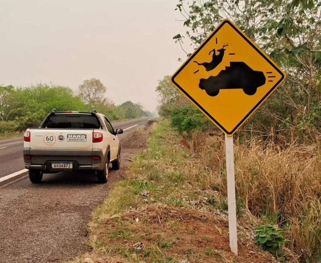 Placas tradicionais de travessia de fauna, comuns em rodovias brasileiras, têm efeito limitado na redução da velocidade dos veículos e pouco contribuem para evitar colisões com animais silvestres. A constatação é de um estudo inédito publicado no Journal of Environmental Management, que analisou o comportamento real de motoristas diante de diferentes modelos de sinalização, inclusive em trechos críticos como a BR-262, em Mato Grosso do Sul.