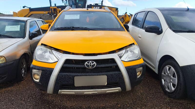 Entre os veículos disponíveis, um Toyota Etios HB Cross, ano 2014, aparece com lance atual de R$ 11.961. O carro está no pátio de Dourados e integra a lista de automóveis aptos para circulação.