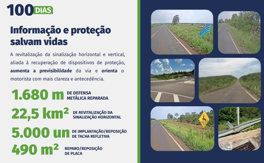 O projeto da concessionária foi detalhado em apresentação técnica realizada na segunda-feira (2). A prioridade inicial é a execução de reparos emergenciais em 150 quilômetros de pavimento nos primeiros 100 dias de contrato. Também estão previstas ações de conservação, limpeza e drenagem das rodovias, além da implantação de serviços de atendimento ao usuário, postos de fiscalização e tecnologia aplicada à operação.