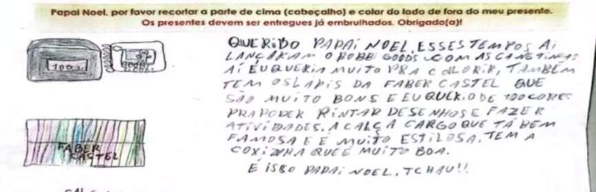 Sobre a campanha – A ação “Papai Noel dos Correios” completa 36 anos em 2025. A iniciativa atende crianças matriculadas na rede pública de ensino até o 5º ano do ensino fundamental, além de instituições parceiras, como creches, abrigos e núcleos socioeducativos. A mobilização também recebe cartas de crianças da comunidade em geral. Os pedidos são feitos por crianças de até 10 anos e por pessoas com deficiência de qualquer idade.