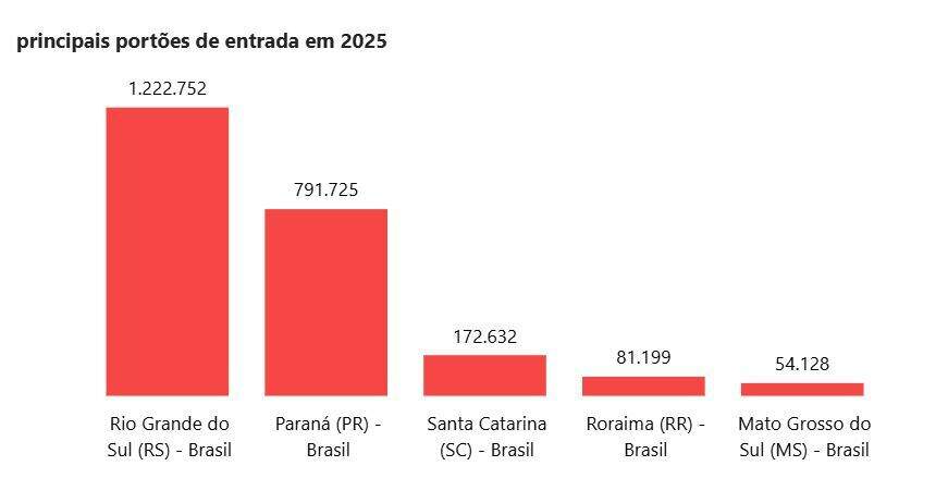 Mato Grosso do Sul está entre os principais pontos de entrada terrestre de estrangeiros no Brasil. Entre janeiro e setembro deste ano, o Estado registrou 54.128 chegadas internacionais por rodovia, conforme dados do Ministério do Turismo com base em informações da Polícia Federal.