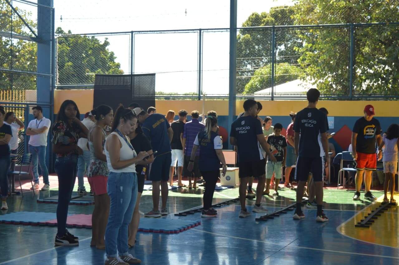 Quadra de esportes da escola ficou lotada para atendimento (Foto: Maya Severino)