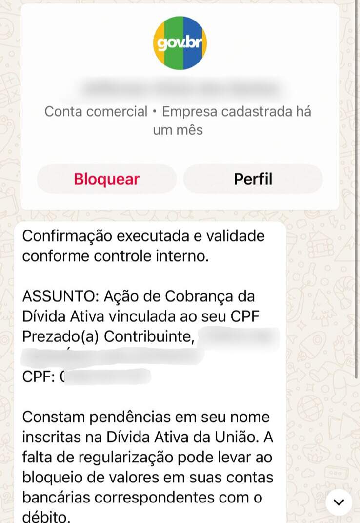 A moradora, que preferiu não se identificar, relatou que a tentativa de golpe ocorreu por meio do WhatsApp. O golpista usou dados pessoais reais, como nome completo e CPF, e se apresentou como funcionário do governo federal.