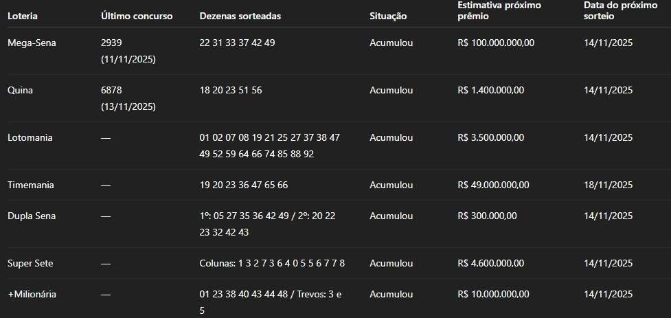 Acumulou - Além dos prêmios registrados em Mato Grosso do Sul na Lotofácil, a maior parte das outras loterias sorteadas nesta quinta e nos últimos dias terminou sem vencedores na faixa principal. Os concursos acumularam e deixam valores mais altos para as próximas extrações.