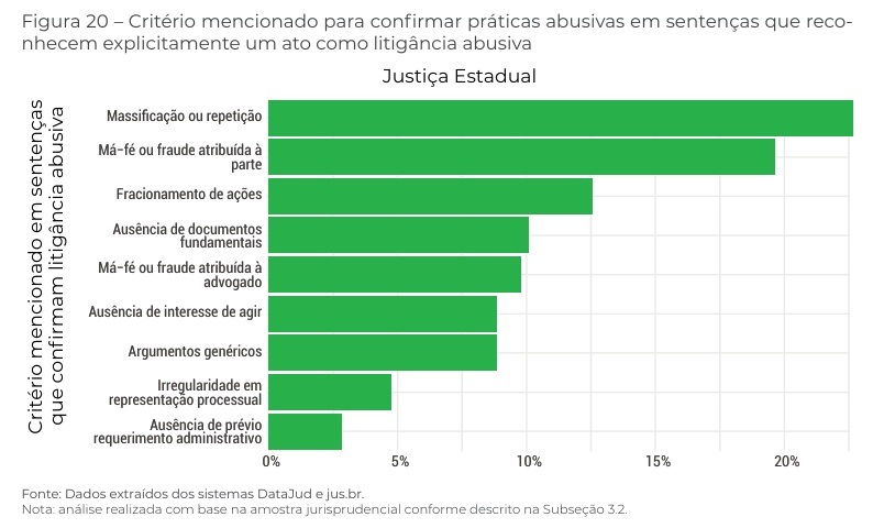 “O núcleo essencial da litigância abusiva é o desvio de finalidade no exercício do direito de ação. A litigância abusiva caracteriza-se, antes de tudo, como forma de abuso do direito fundamental de petição, rompendo com o princípio da boa-fé processual (…) e instrumentalizando a jurisdição para fins colaterais — seja para obter acordos forçados, retaliar adversários, atrasar obrigações sabidamente devidas ou explorar falhas institucionais”, destaca o relatório.