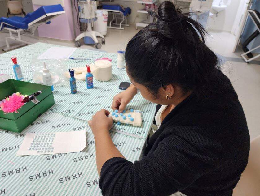 Famílias com bebês internados na Unidade Neonatal do HRMS (Hospital Regional de Mato Grosso do Sul), em Campo Grande, tiveram momentos de acolhimento, descontração e criatividade nesta semana. Para marcar o mês das crianças, foi realizada uma versão especial do “cabelo maluco” com a ação “toucas malucas”.