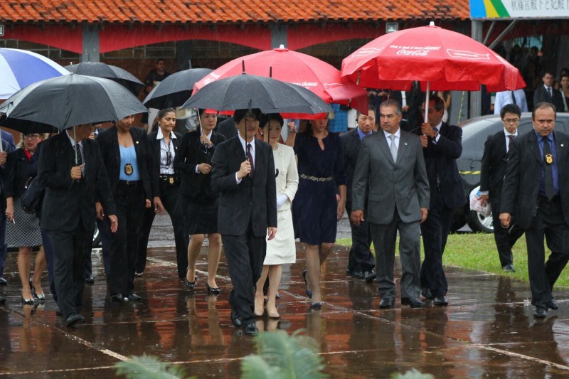 O casal real japonês, princípe Akishino e a princesa Kiko, que iniciou nesta segunda-feira visita oficial a Mato Grosso do Sul, foi recebido de forma carinhosa e emocionada pelos representantes da comunidade nipônica da Capital que esteve na sede campo da Associação Esportiva e Cultural Nipo-Brasileira. Este foi o segundo compromisso da agenda oficial que eles cumpriraram na Capital.