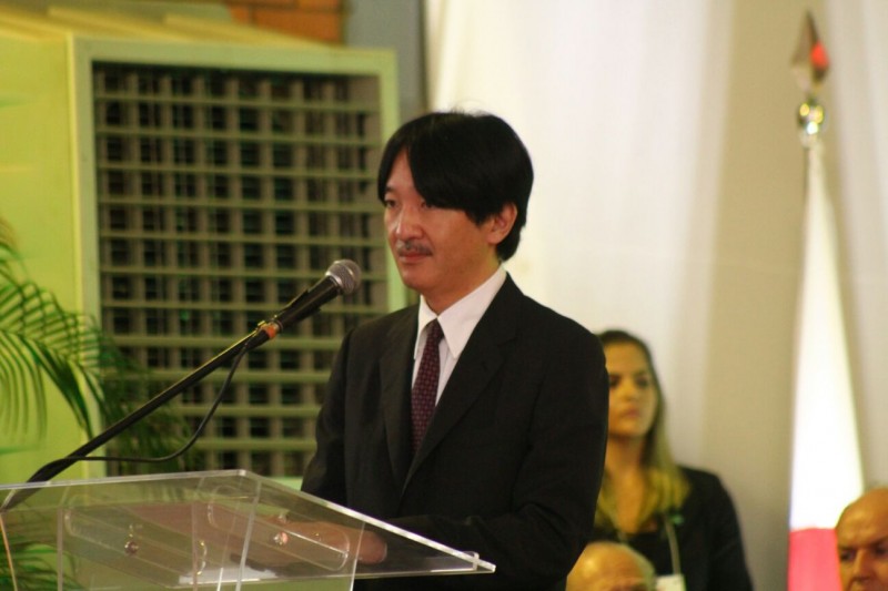 O primeiro a se pronunciar foi o presidente da Associação, Acelino Nakazato, que agradeceu a vistia do casal real, mas fez um breve relato sobre o histórico da imigração japonesa para o Brasil, um legado marcado pelo sofrimento,mas teve como marca a superação.