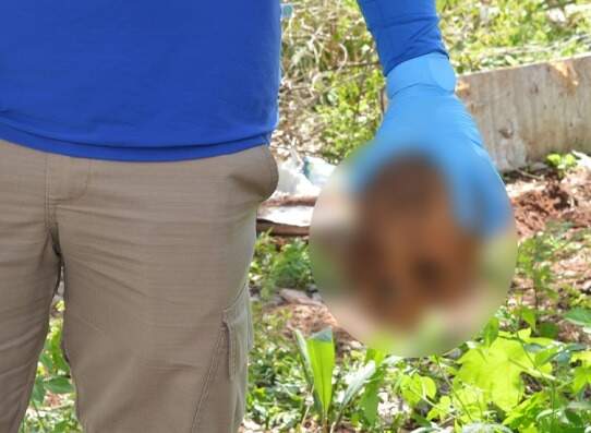 A aposentada também mencionou a presença de um saco pendurado em uma árvore próxima, o que chamou a atenção dos moradores. No entanto, o crânio estava fora de qualquer embalagem, jogado diretamente no terreno.