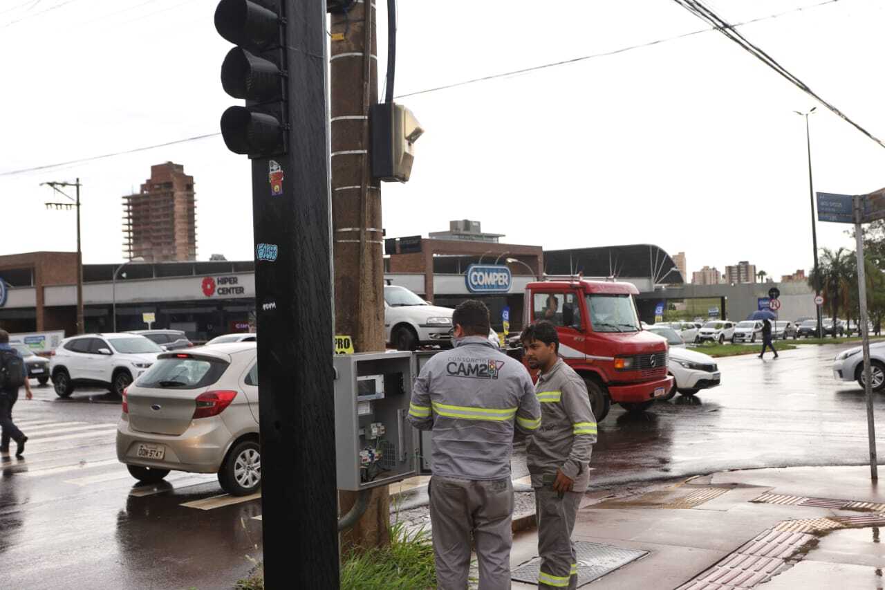 No Jardim dos Estados, diversos pontos também estão com semáforos apagados, obrigando motoristas e pedestres a redobrarem a atenção.