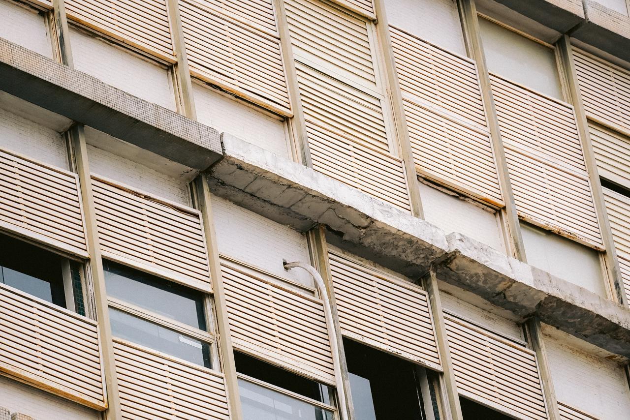 No Edifício Nakao, parte superior do revestimento da parede se perdeu. (Foto: Renan Kubota)