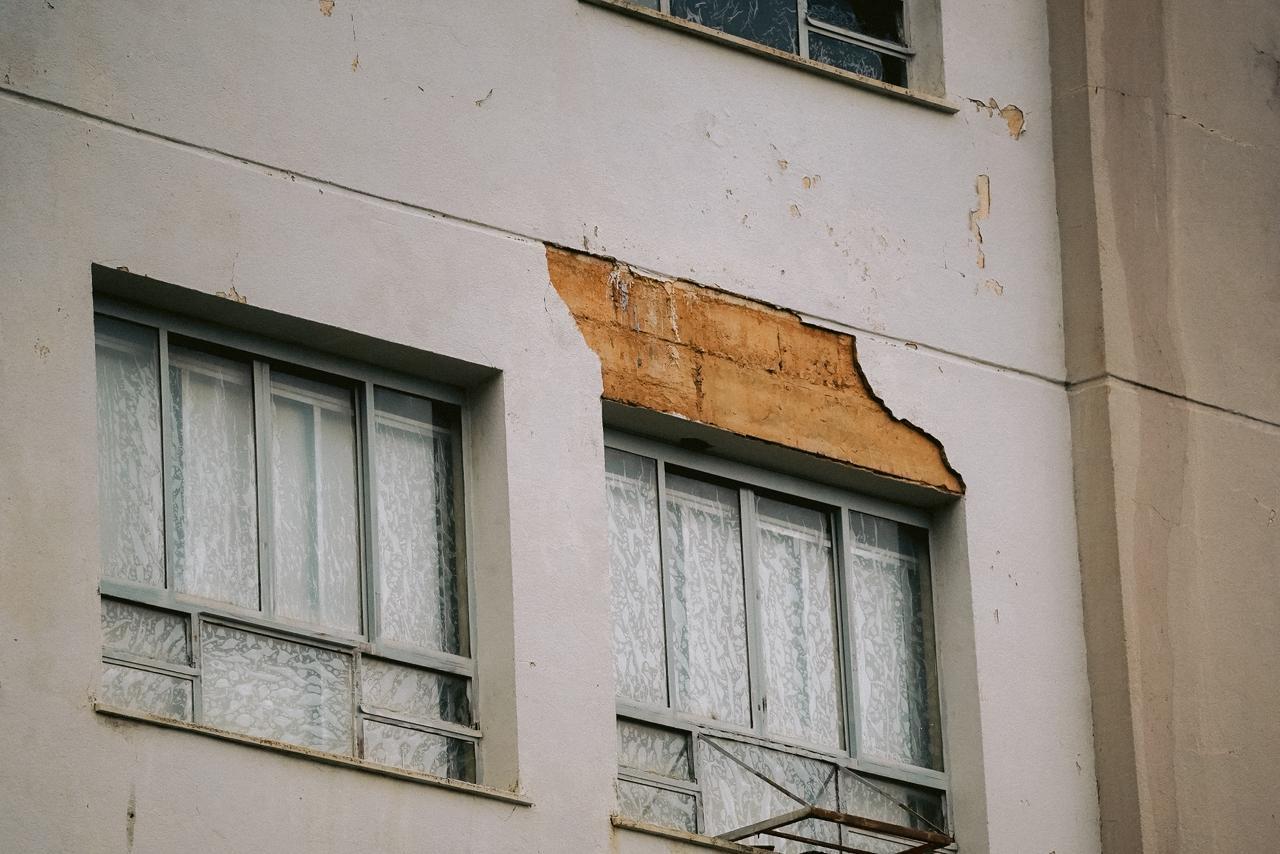Os edifícios mais velhos apresentam pintura gasta e infiltrações, mas sem danos graves