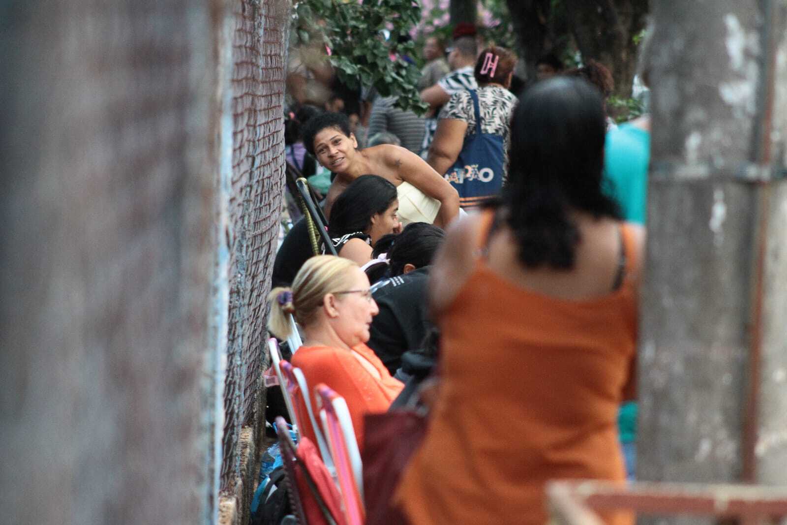 Ela mora com os dois filhos, um adolescente de 14 anos e uma menina de 2 anos. “Eu cheguei aqui 4 horas da madrugada e fiquei em pé. Quando deu 6h, eles abriram e colocaram a gente na quadra”.