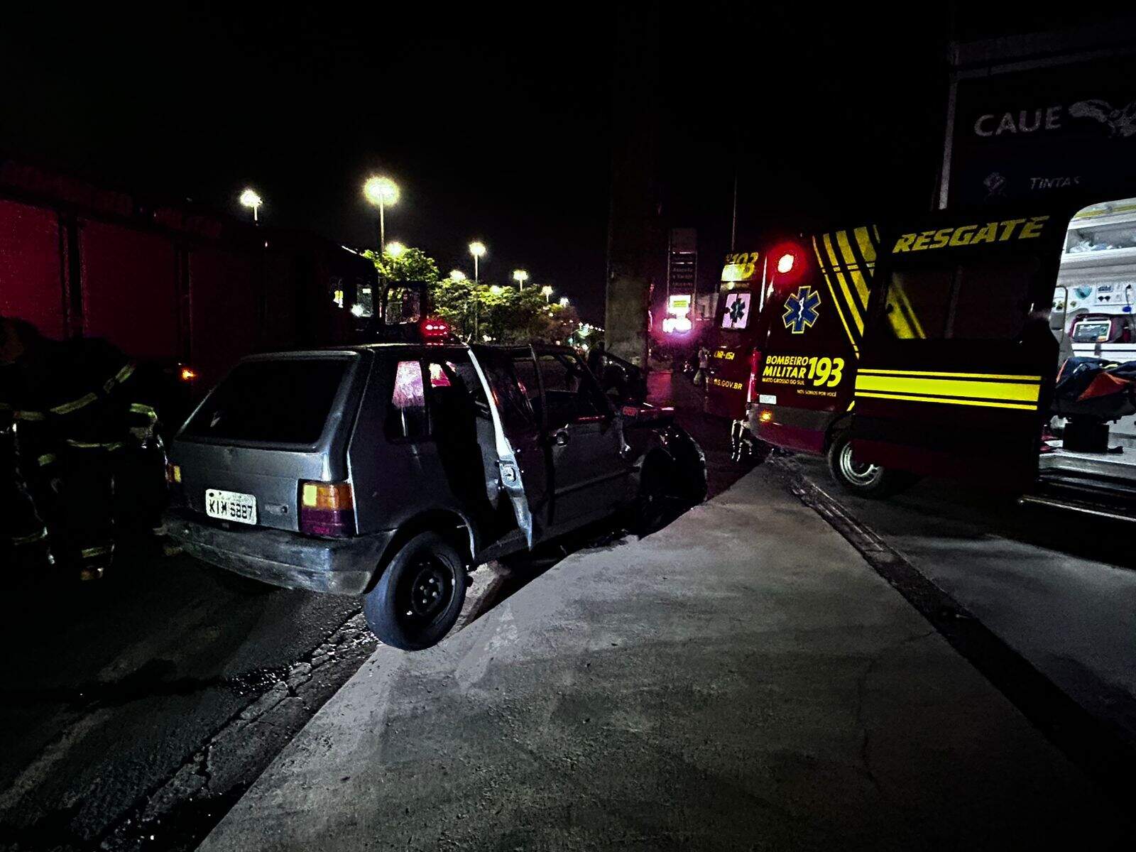 Fiat Uno atingiu estrutura perto de atacadista e mobilizou resgate na noite de sábado (13)