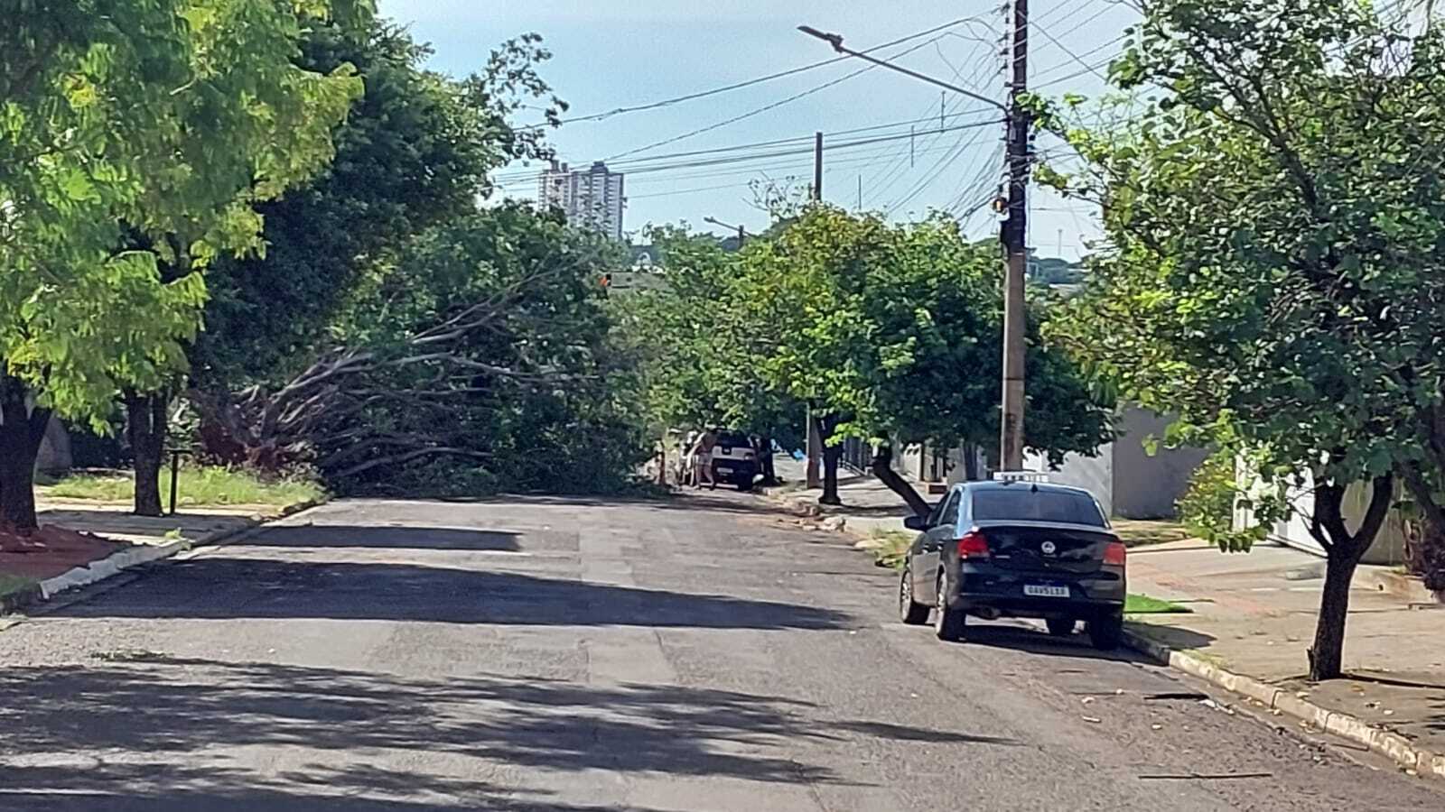 Na Rua Juruena, esquina com a Engenheiro Roberto Mange, no Bairro Taquarussu, a queda de uma árvore interditou a via. A aposentada Maria Tereza, 63 anos, conta que a queda foi durante a chuva forte de ontem. Ela afirma que a arvore já estava seca e havia pedido de remoção. Uma equipe da Defesa Civil foi ao local.