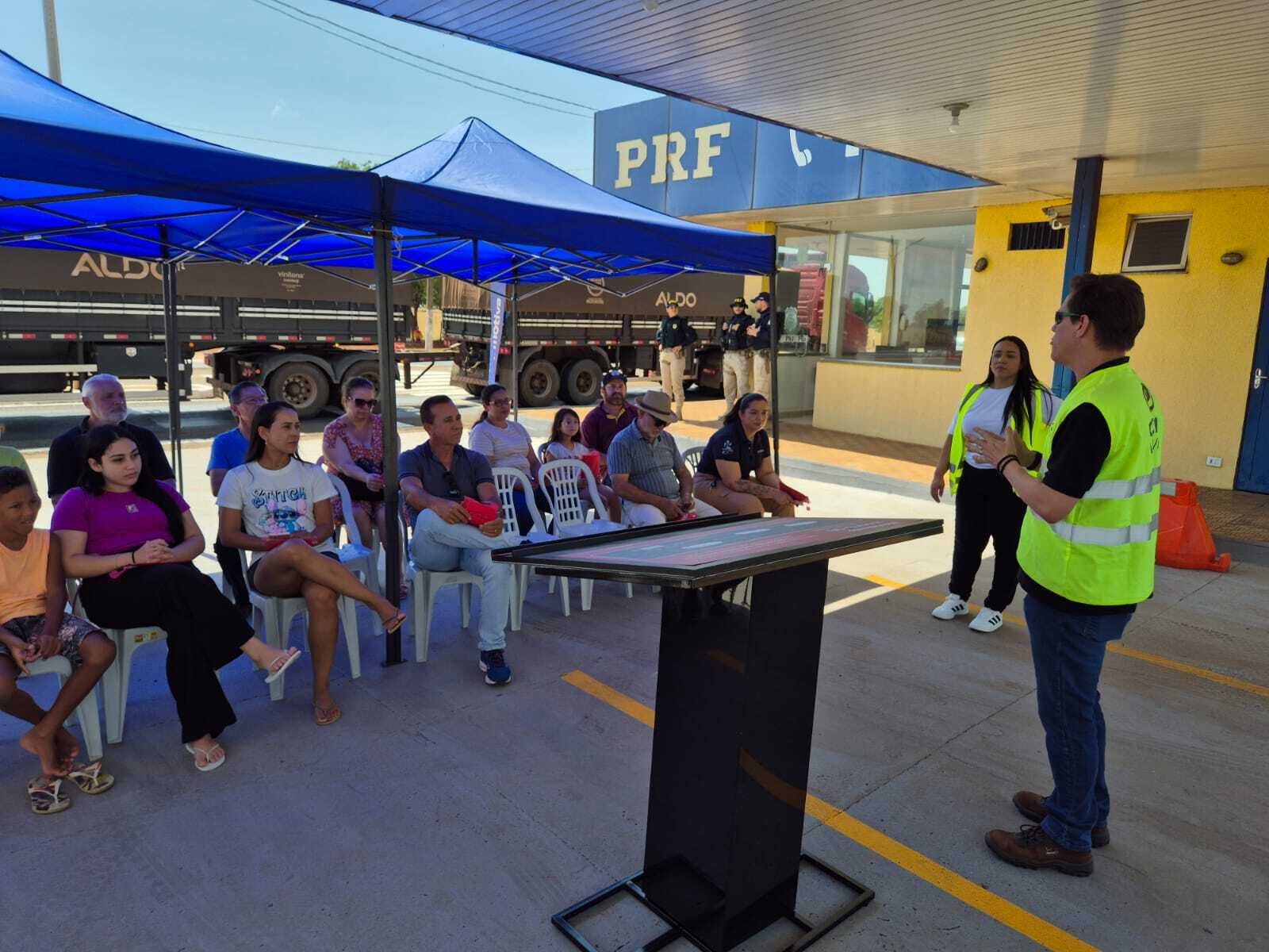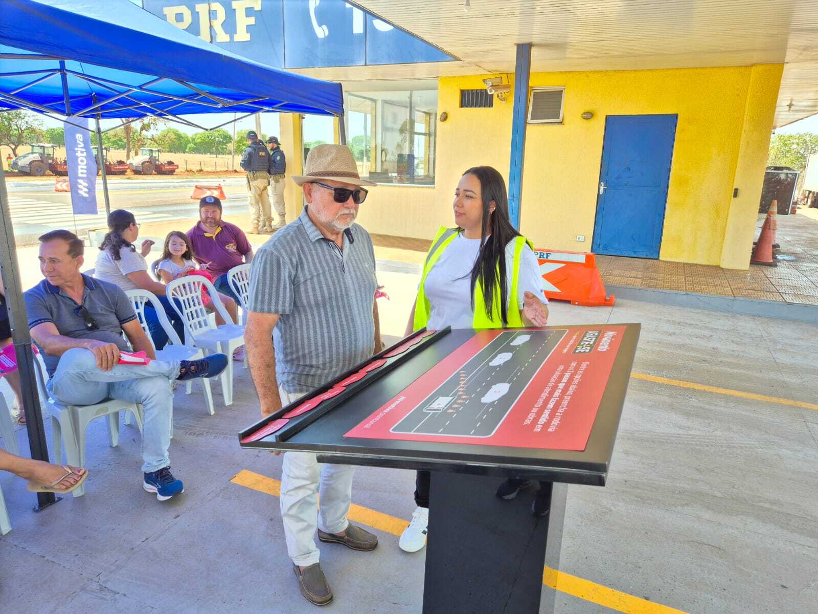 Durante a ação, equipe da Motiva apresentou ao público orientações sobre direção defensiva e comportamento seguro no trânsito (Foto: Divulgação / PRF)
