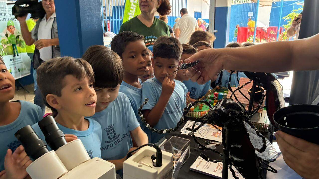 Conscientização — Paralelamente às inspeções, equipes da Sesau também realizam ações educativas com crianças e moradores. Durante o lançamento, havia estandes na escola onde agentes explicaram o ciclo de vida do mosquito, mostraram larvas e orientaram sobre a eliminação de criadouros.