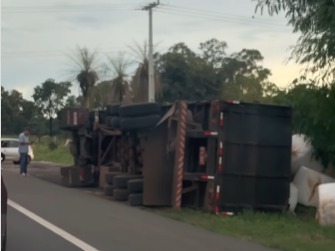Uma carreta carregada com cerca de 30 toneladas de silagem tombou no fim da tarde desta quinta-feira (12), na saída para Cuiabá (MT), em Campo Grande. O acidente ocorreu no km 485 da BR-163, por volta das 17h50, mobilizando equipes de atendimento da concessionária responsável pela rodovia, a Motiva Pantanal.