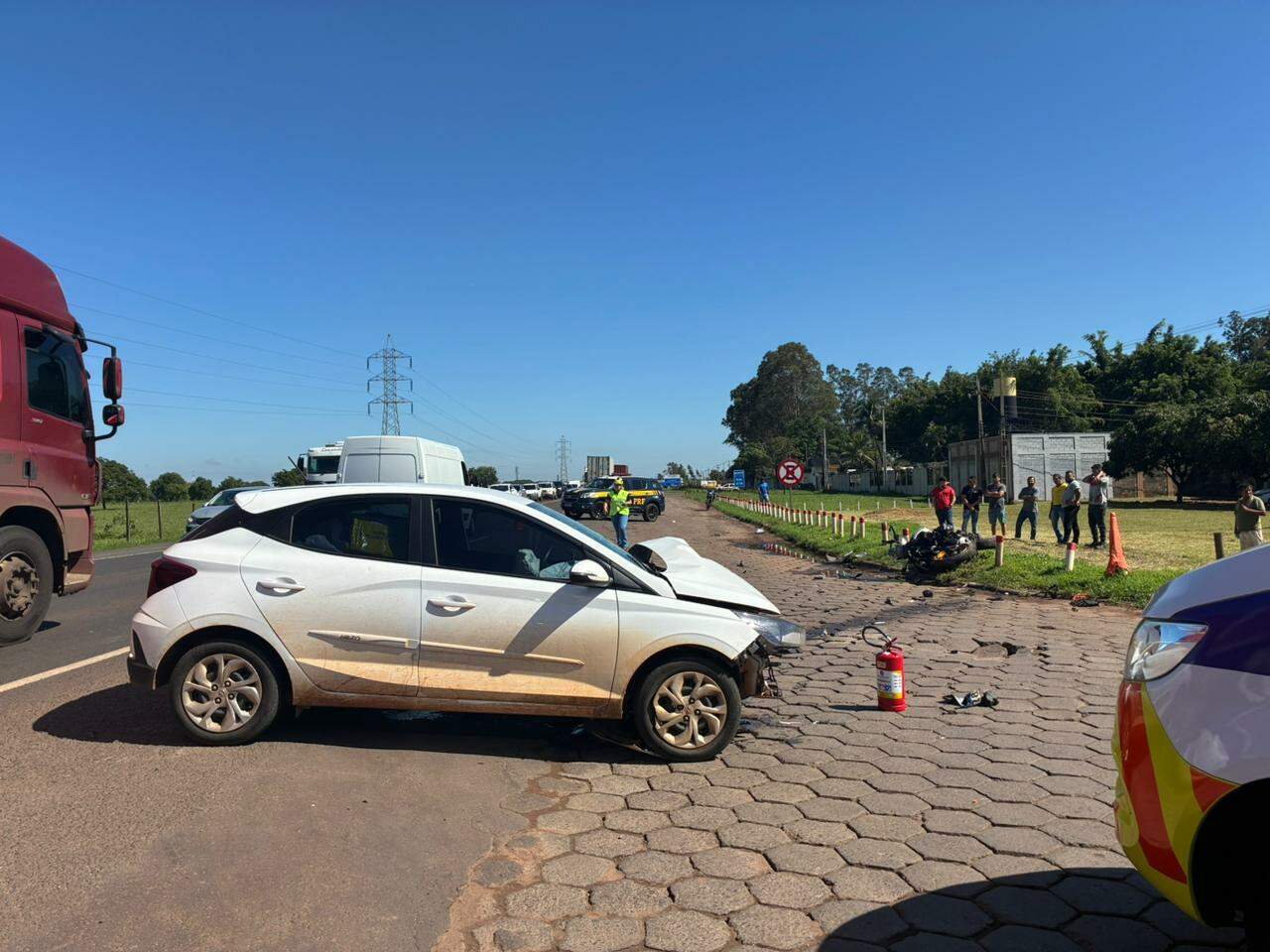 Um acidente envolvendo um HB20 e uma motocicleta BMW ocorreu na manhã desta quinta-feira na BR-163, próximo a um posto de combustíveis na saída para Cuiabá. O motociclista sofreu ferimentos nas mãos, incluindo fraturas nos dedos, e foi atendido pela equipe da Motiva Pantanal. O acidente aconteceu quando a motorista do HB20 tentou acessar o posto de combustíveis em local sem sinalização clara de entrada e saída. A moto trafegava pelo acostamento quando houve a colisão. A condutora do carro não se feriu, mas ficou em estado de choque.