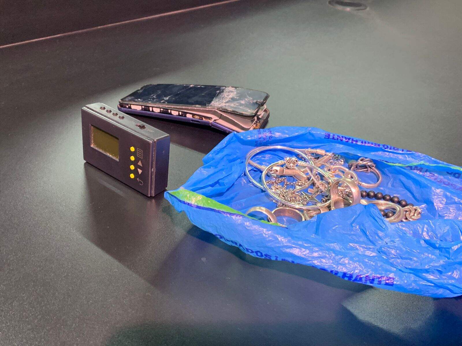 "Chapolin", celular e joias apreendidas com os suspeitos (Foto: Dayene Paz)