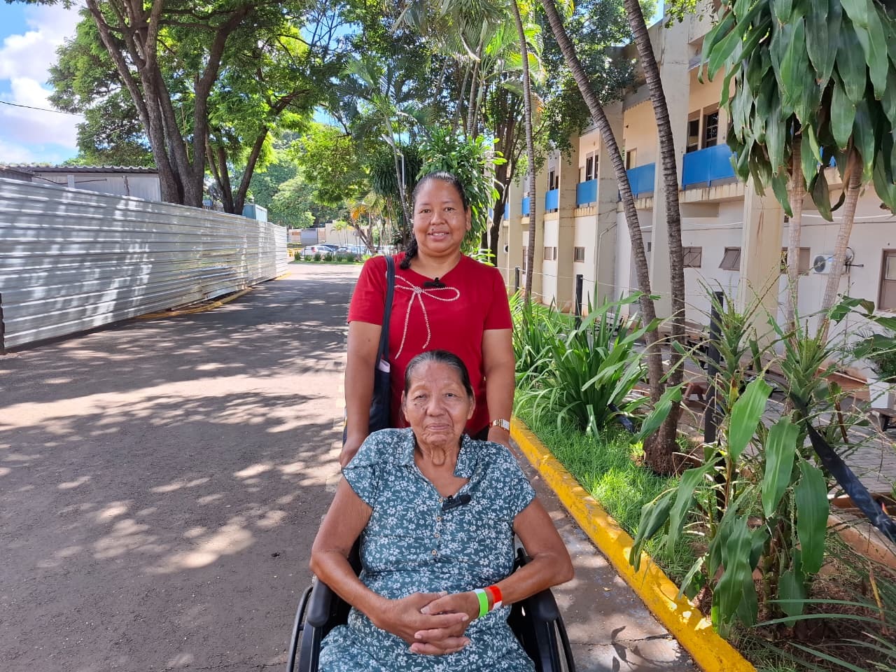 Indígena Terena, Eleosdeth foi acompanhada da filha para fazer exame de tomografia no HU (Foto: Unidade de Comunicação Humap-UFMS/Ebserh).