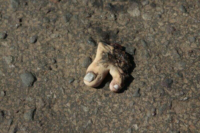 Os dedos são do pé esquerdo e aparentam ser de uma mulher.