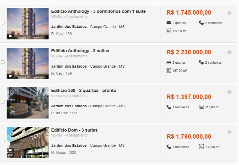 O edifício Downtown Boutique Studios, que ainda está sendo erguido, terá 22 andares com 220 moradias na modalidade estúdio com tamanhos de 36 a 52 metros quadrados. Já o prédio Anthology está sendo construído com 21 andares e imóveis residenciais de até 167 metros quadrados, além de 29 salas comerciais de até 229 metros quadrados. Um apartamento neste último edifício está anunciado por R$ 2.230.000,00. Ainda no Jardim dos Estados, a empresa ergueu os condomínios Dom e Três Meia Zero.