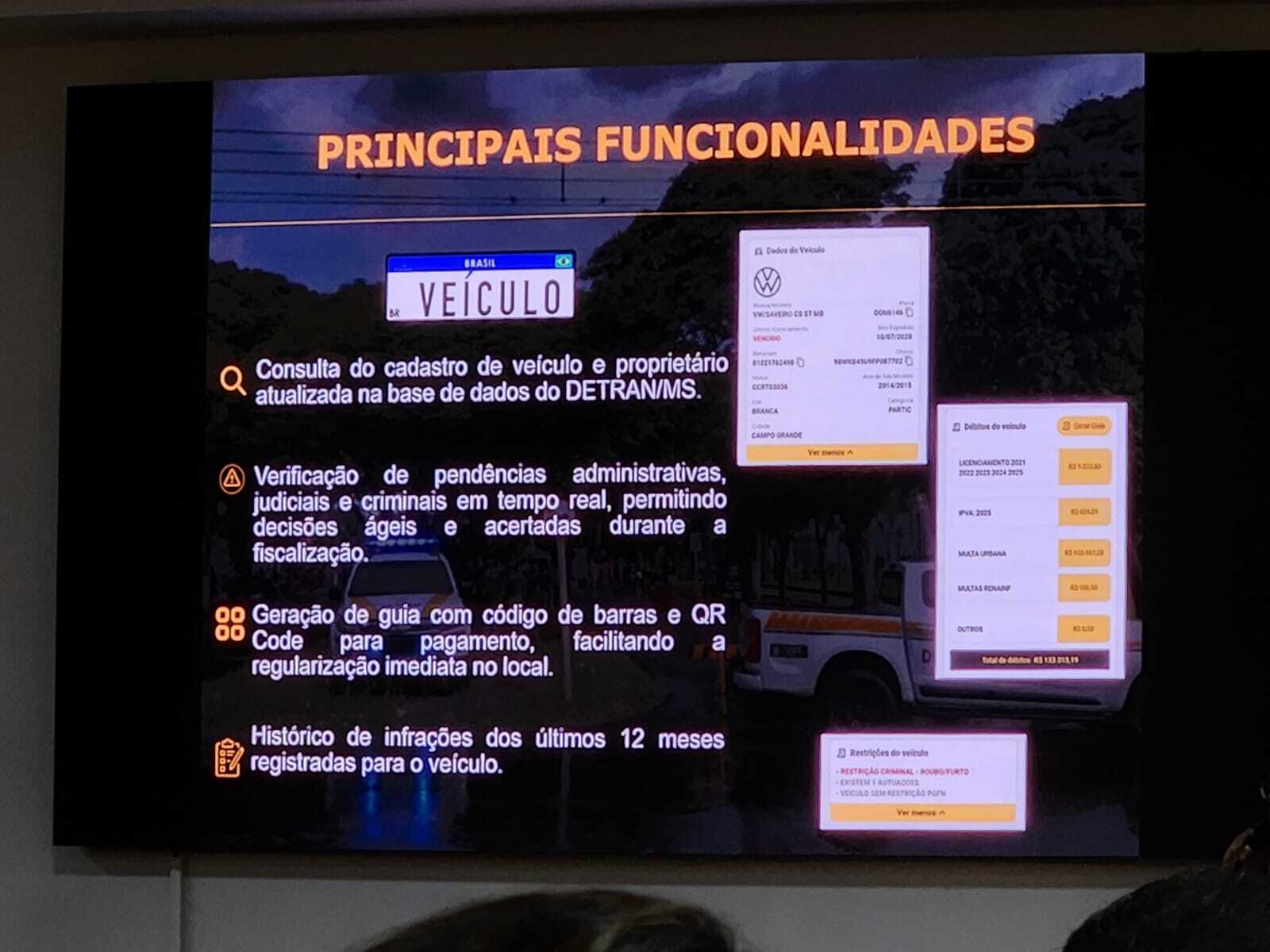 O Detran-MS lançou o aplicativo Agente Digital MS, desenvolvido internamente pela equipe de TI do órgão, sem custos adicionais. A ferramenta permite consultas em tempo real sobre veículos e condutores, incluindo situação da CNH, pendências de licenciamento e histórico de infrações dos últimos 12 meses. O sistema, disponível para Android e iOS, possibilita pagamento via Pix com baixa automática em três minutos. Durante a fase de testes, já identificou uma pessoa com mandado de prisão em aberto. A tecnologia pode ser utilizada por diferentes forças de segurança, como Polícia Militar, Guarda Municipal e Polícia Rodoviária Federal.
