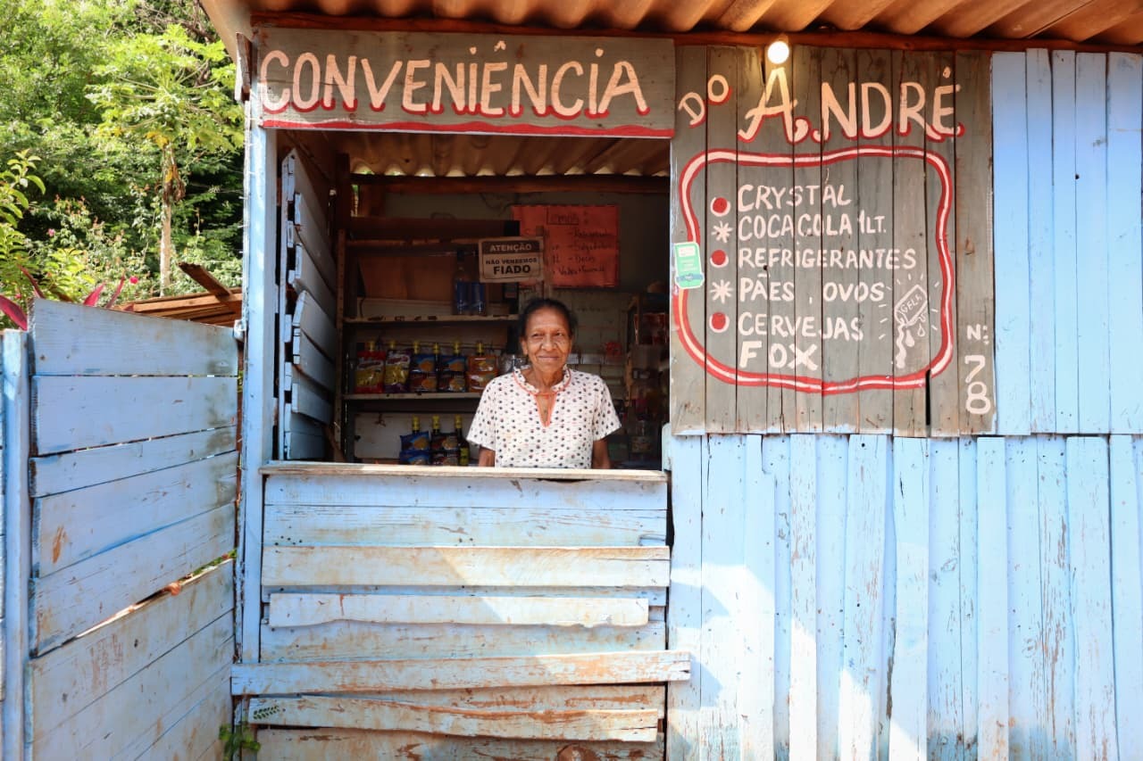 Desalento - Vera Lúcia Maria de Souza tem 65 anos e há alguns meses pediu para um dos filhos pintar de azul-bebê o portão improvisado do barraco que fica na entrada da Cidade dos Anjos. Uma cor delicada para diferenciá-lo do restante das habitações, já que a família abriu uma pequena conveniência anexa que precisa chamar atenção. Eles vendem pães, ovos e industrializados diversos como salgadinhos, bolachas, pirulitos e geladão. Dose de pinga, cerveja, cigarro e isqueiros também estão nas prateleiras de ferro.