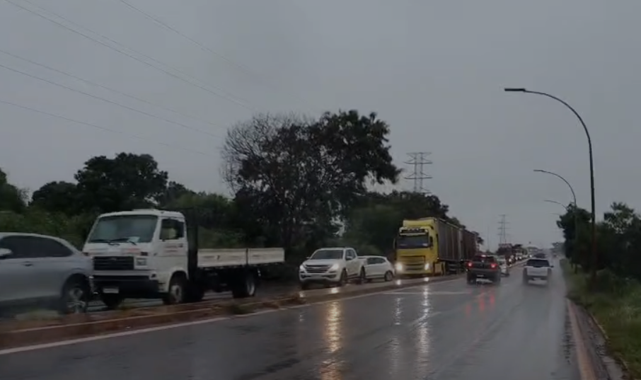 No mesmo ponto, a fila de veículos no sentido Três Lagoas–Centro atingiu cerca de 1 km, com carros e caminhões que enfrentam dificuldade para cruzar a via. Parte do canteiro central cedeu, o que faz com que a água escoe pela estrutura.