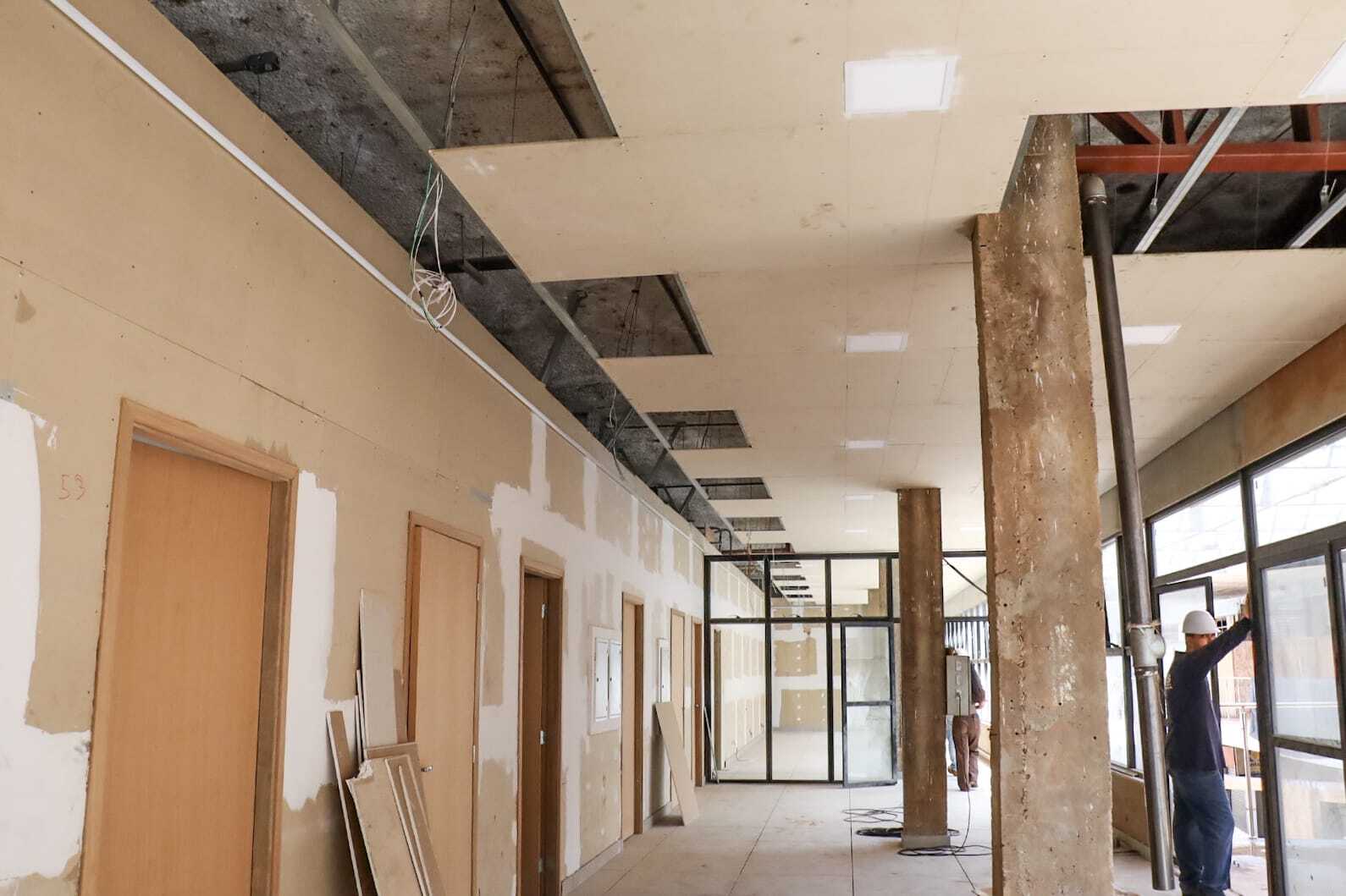 Reforma em andamento na parte interna da antiga rodoviária de Campo Grande (Foto: Henrique Kawaminami/Arquivo)