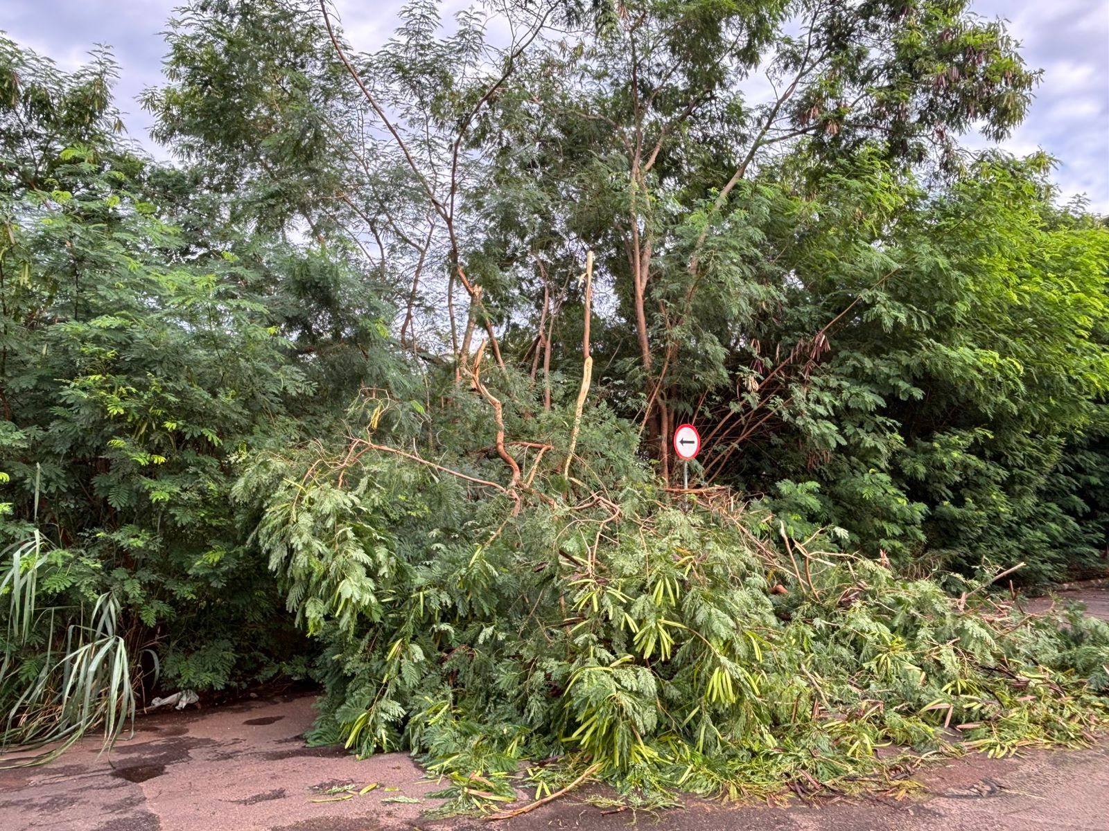 Não havia sinalização no local para orientar os condutores. A reportagem questionou a Agetran (Agência Municipal de Trânsito) e aguarda retorno. A Sisep (Secretaria Municipal de Infraestrutura e Serviços) também foi consultada sobre a previsão para recolher os galhos.