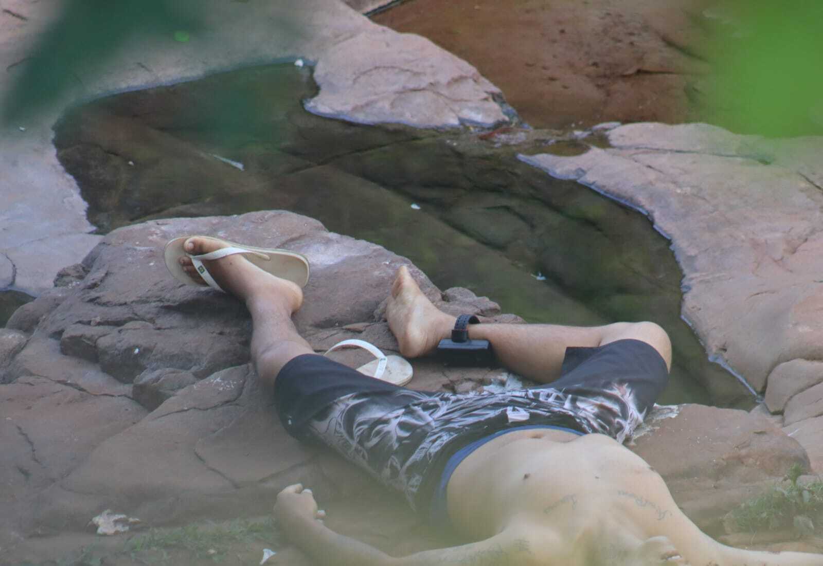 Conforme apurado pela reportagem, os vizinhos escutaram o barulho de três tiros por volta de 12h; no entanto, ninguém saiu para ver o que estava acontecendo. O rapaz utiliza tornozeleira eletrônica e veste apenas uma bermuda.