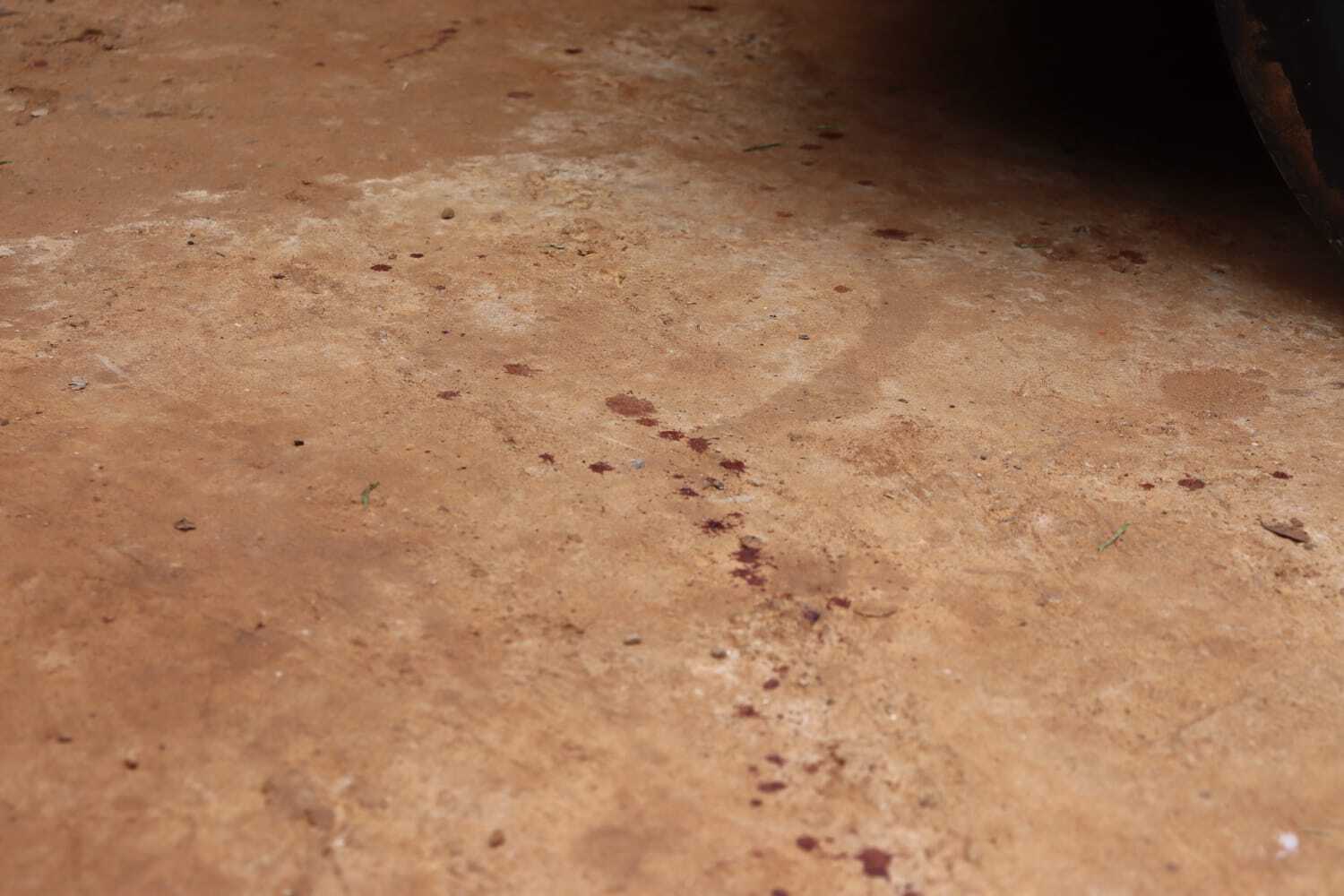 Sangue na calçada onde briga aconteceu (Foto: Osmar Veiga)