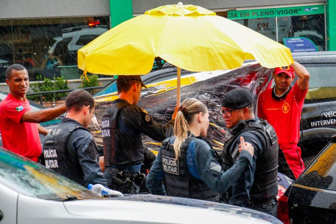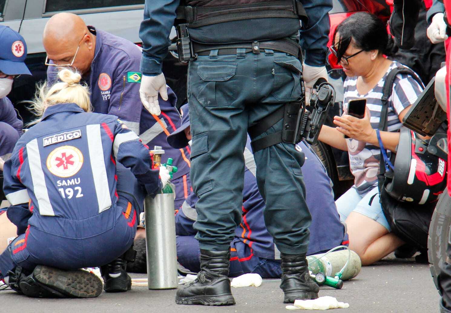A chuva começou cerca de uma hora depois do início das tentativas de reanimação, e as equipes do Samu (Serviço de Atendimento Móvel de Urgência), motossocorristas do Corpo de Bombeiros e policiais militares precisaram improvisar uma cobertura com guarda-chuvas e lonas para continuar o atendimento.