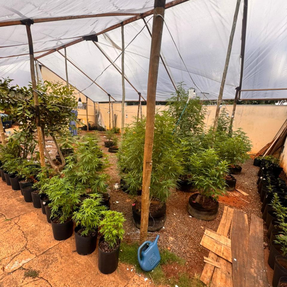 Policiais do BPChoque (Batalhão de Polícia de Choque) localizaram uma estufa com plantas que, segundo a corporação, não se enquadravam no uso medicinal autorizado.