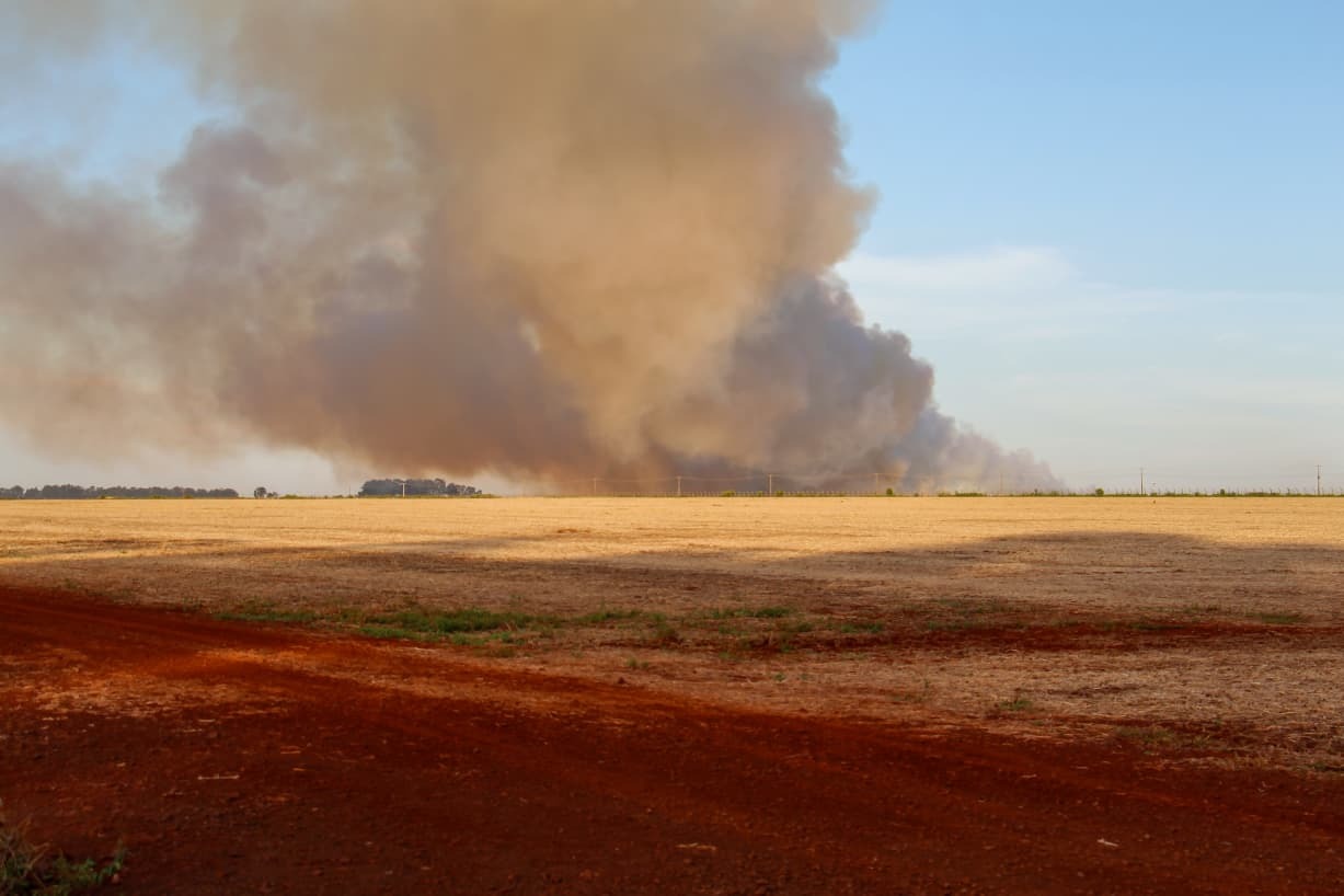 Um incêndio de grandes proporções atingiu cerca de 50 hectares de área rural no Bairro São Conrado, região sudoeste de Campo Grande, na tarde desta quarta-feira. A fumaça intensa foi vista a quilômetros de distância, mobilizando equipes do Corpo de Bombeiros. O proprietário do terreno, que havia realizado a colheita há dois dias, relatou que incêndios são recorrentes na região, especialmente nos limites com o bairro vizinho. Seis bombeiros militares atuaram no combate às chamas, utilizando principalmente moto-soprador e um caminhão com capacidade para mil litros de água.