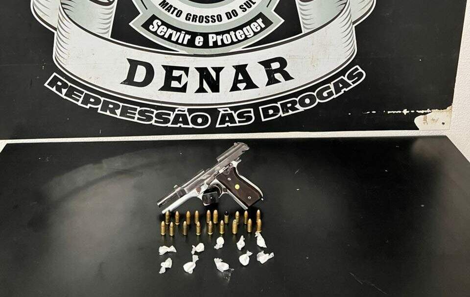 Com as informações confirmadas, equipes da Denar fizeram incursão no imóvel usado pelos suspeitos, no Jardim Campo Nobre. No local, os policiais apreenderam uma pistola calibre 9 mm da marca Taurus, 17 munições de 9 mm, duas munições calibre 40, além de dez papelotes de cocaína que somaram 4,2 gramas. A motocicleta Yamaha FZ25 furtada também foi recuperada.