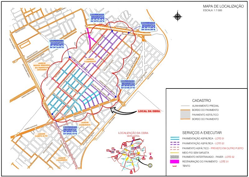 A Agesul (Agência Estadual de Gestão de Empreendimentos) firmou contrato de R$ 19.914.884,87 com a empresa Equipe Engenharia Ltda para executar o chamado Lote 01 da obra. O pacote inclui pavimentação e implantação de drenagem para escoamento da água da chuva, um dos principais problemas enfrentados em bairros em expansão.