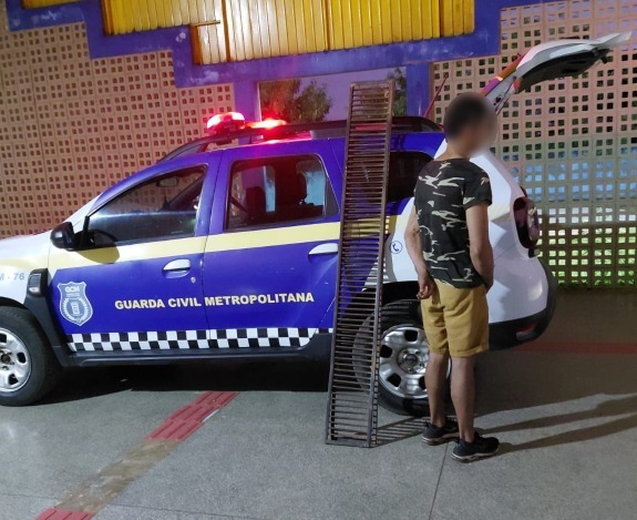 O guarda municipal que estava de plantão na escola relatou que viu o homem carregando uma grade em direção ao muro. Durante a abordagem, ele percebeu ainda que outra peça já havia sido colocada sobre o muro, indicando que o material estava pronto para ser levado.
