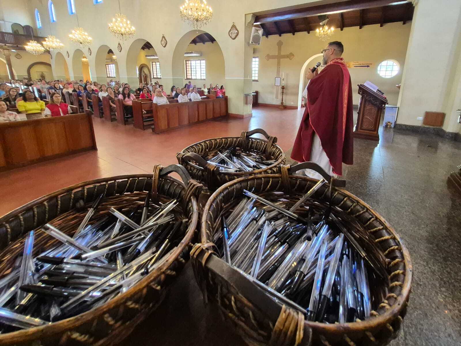 Mais de mil canetas são abençoadas em celebração para estudantes do Enem
