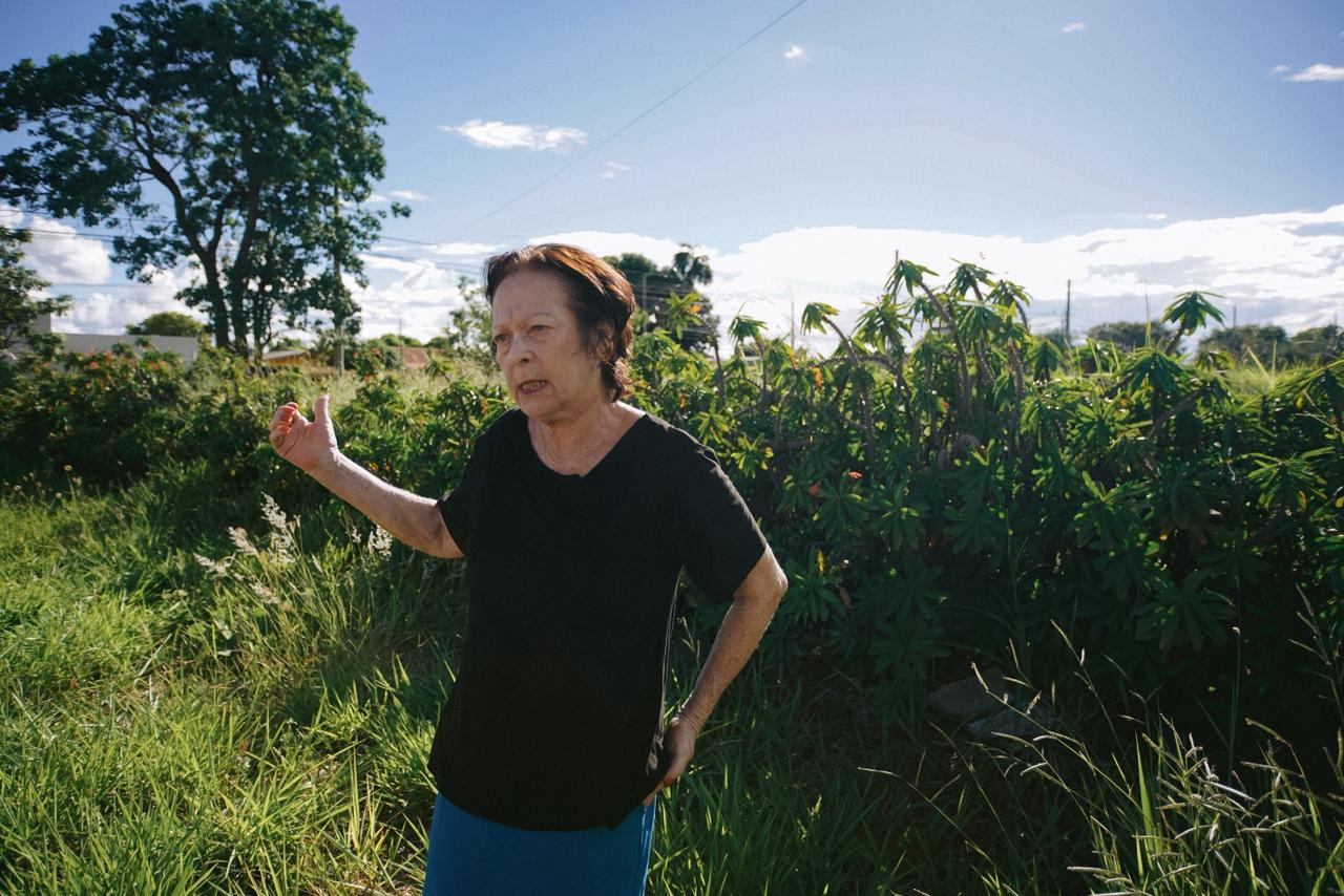 Nilza Pavão dos Santos em frente ao terreno (Foto: Renan Kubota)