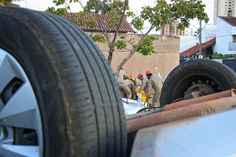 A tarde desta quarta-feira (19) não foi de sorte para o mecânico Edson Moraes, de 41 anos. Enquanto fazia testes no automóvel de um cliente, o trabalhador acabou se envolvendo em um acidente de trânsito e capotando o veículo que deveria consertar.