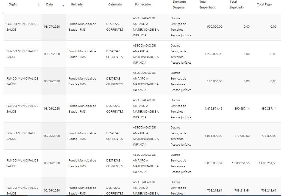 Na página da transparência do município, foi possível verificar que o hospital não recebe da prefeitura desde junho. De R$ 10.279.793,55 empenhados naquele mês, apenas R$ 3.576.324,30 foram pagos. Em julho, foram empenhados para repasse, R$ 2,1 milhões, mas nada foi pago.