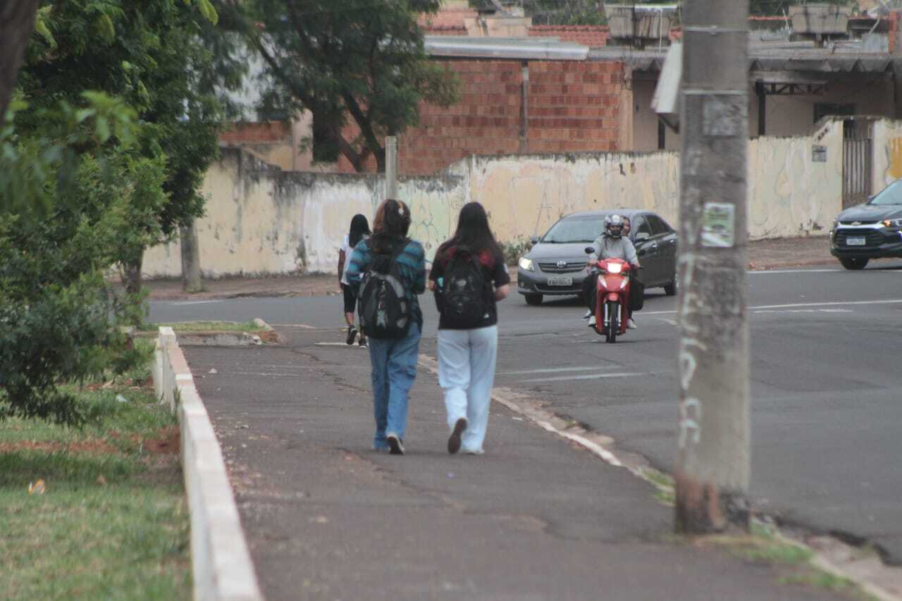 Adolescentes passando pela praça para ir à escola (Foto: Marcos Maluf)